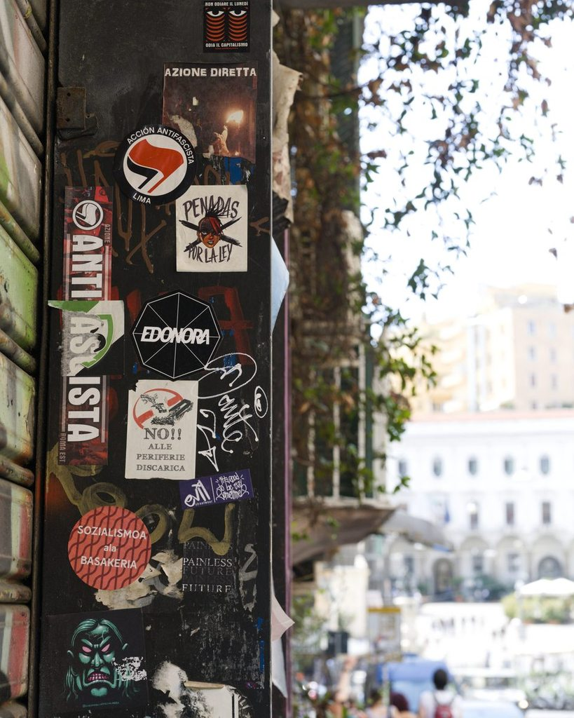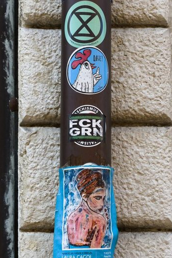 Below are some stickers that I found around the place. Only in one place did I notice a right-wing sticker on top of a lefty. I’ll start with that one – it was in Trento, Italy.